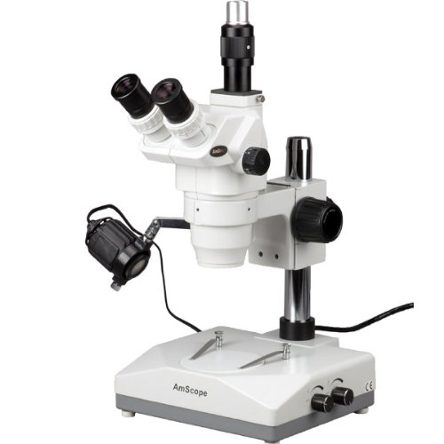 Trinocular port for adding photographic or video capability.Extreme large base with transmitted (bottom) illumination system with dimmer.EPI-illumination (top) light with flexible mechanical arm and dimmer.This model comparable to Leica, Zeiss, Nikon and Olympus microscopes.3.35X-45X zoom magnification power with 8" (200mm) large working distance..AmScope Ultimate Trinocular Dissecting Zoom Stereo Microscope 3.35X-45X Features.